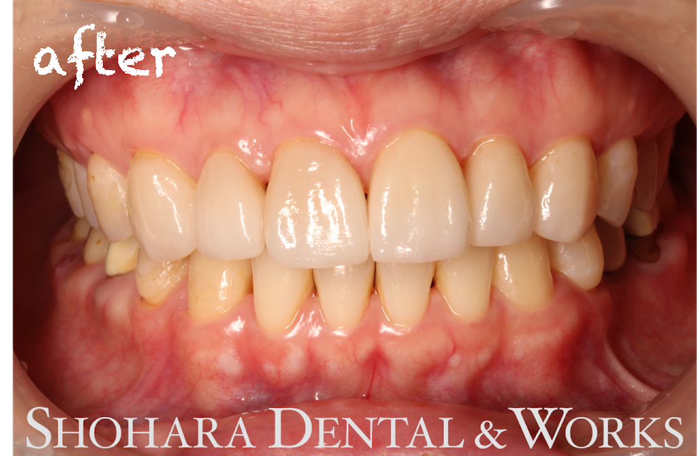 初回に既存のラミネートベニアを除去し、印象採得、写真撮影。そしてプロビジョナル装着(仮歯)。1週間後のラミネートベニアを装着しました。