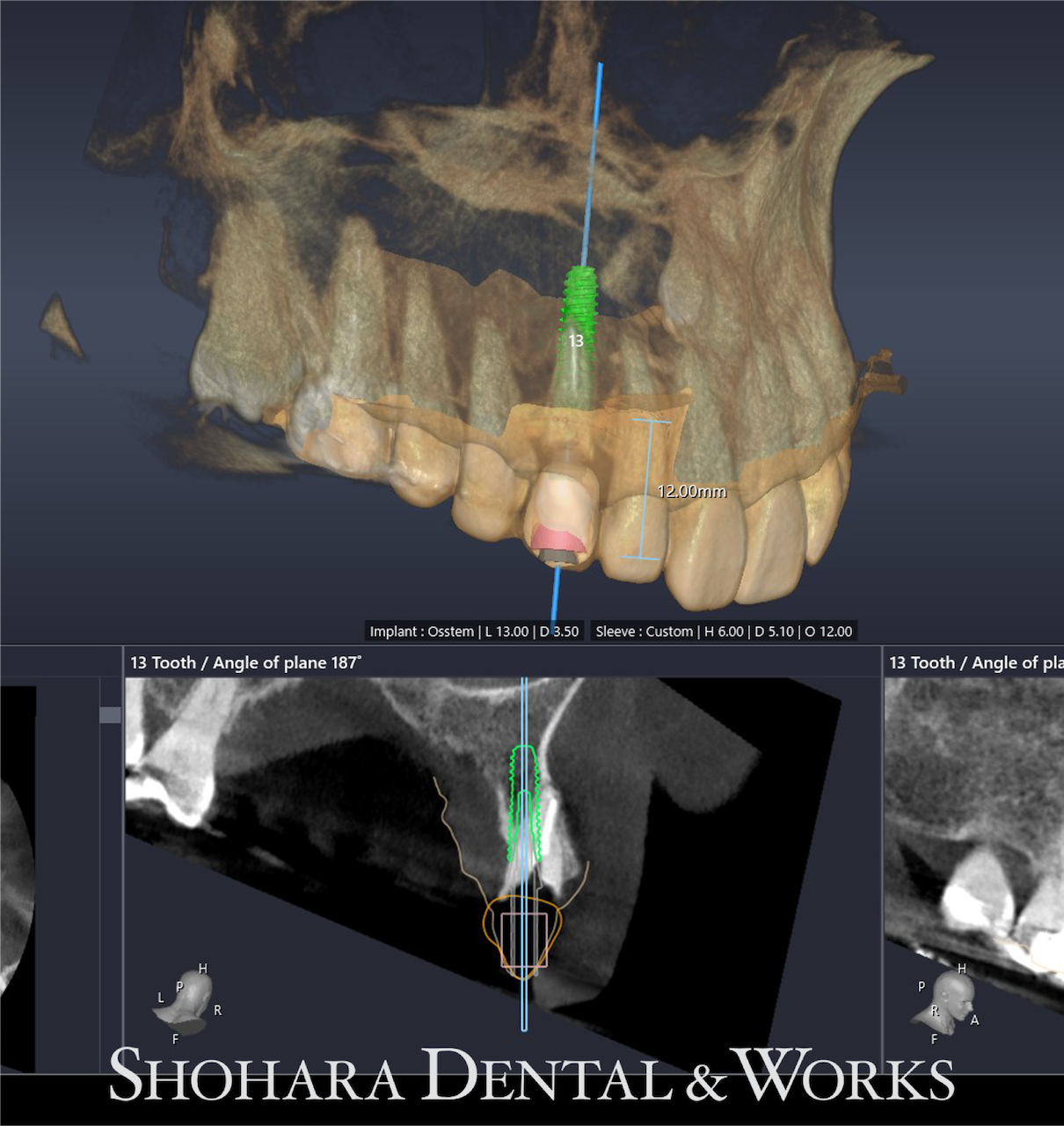シミュレーションソフトでインプラント埋入位置を設計し、サージカルステントを作製。